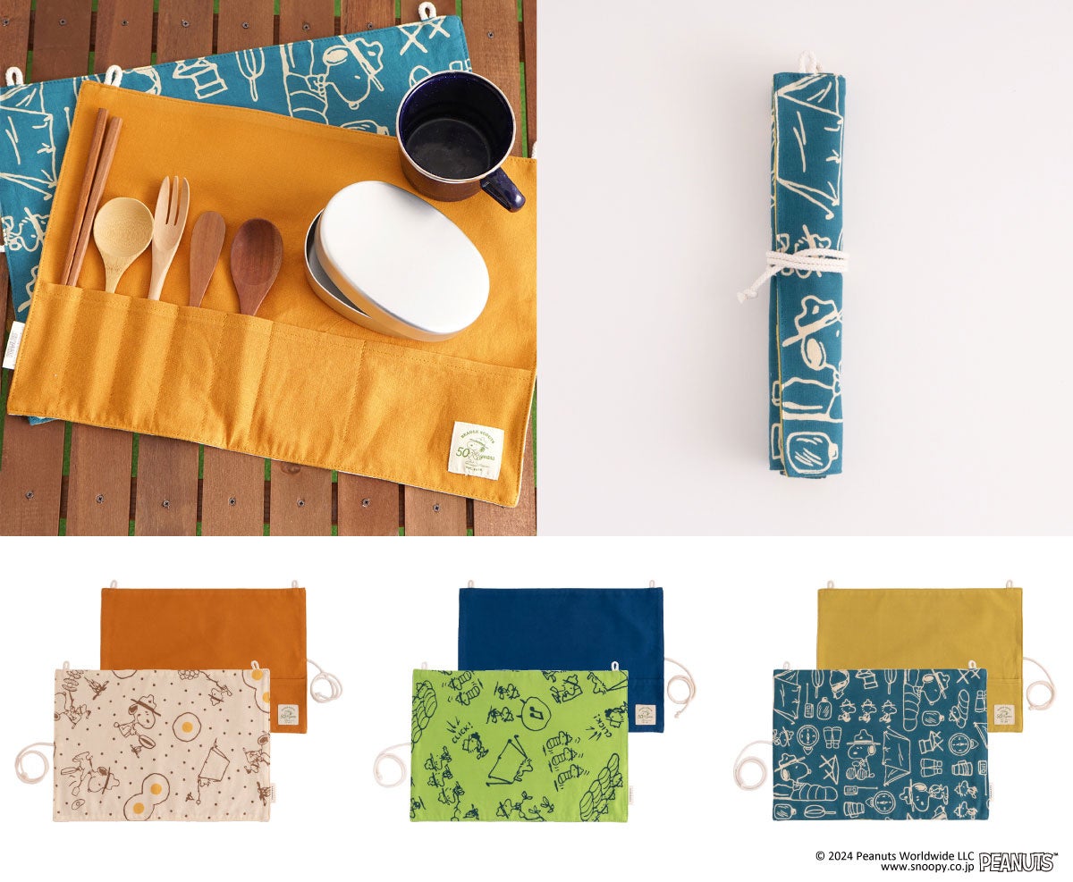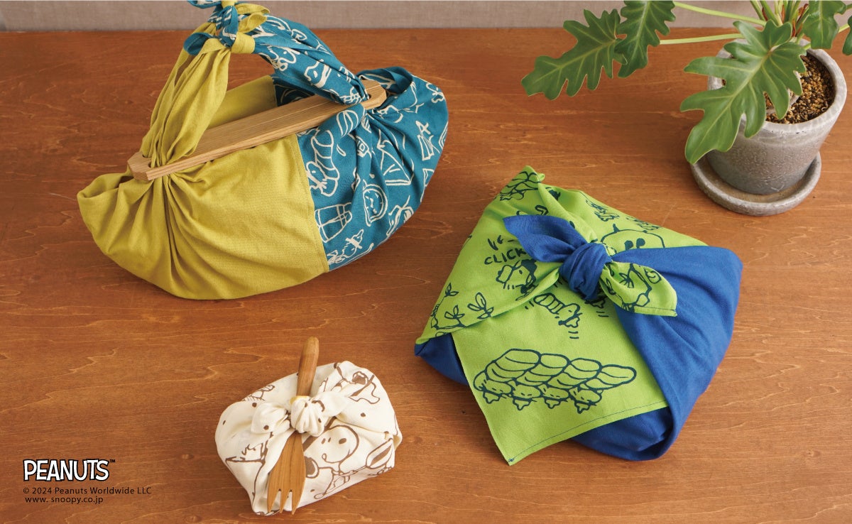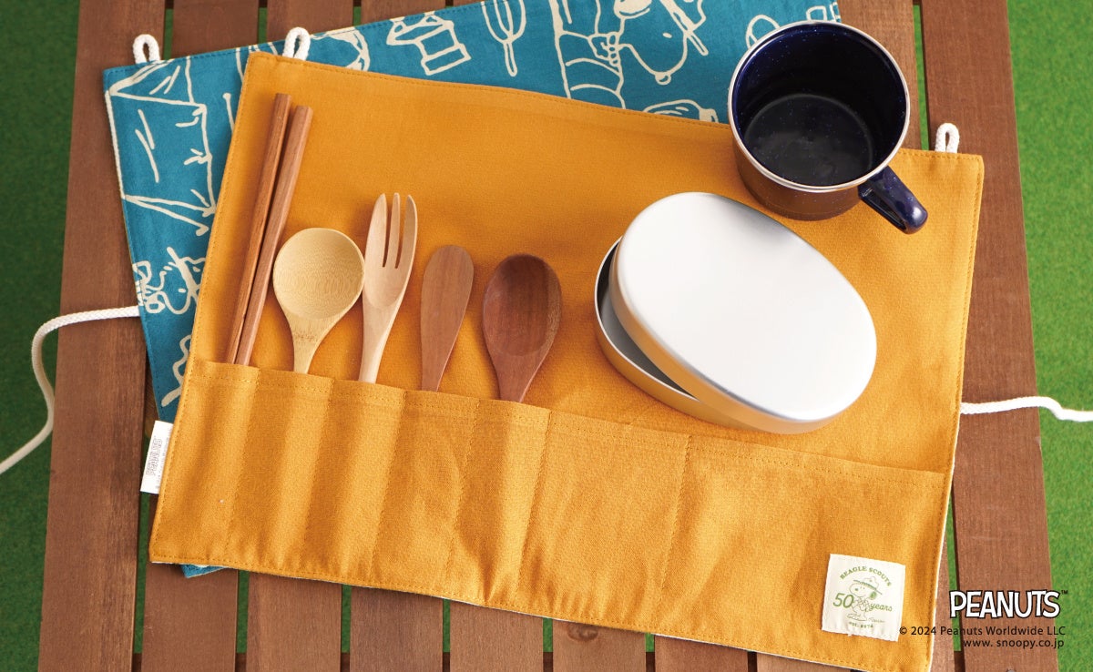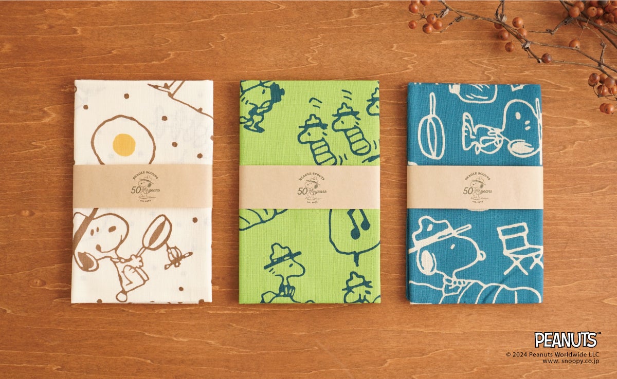 さらに、今回のシリーズでは「ビーグル・スカウト」コミック登場50周年を記念した“おでかけグッズ”も展開します。ビーグル・スカウトは、スヌーピー率いるウッドストックや親友の鳥たちが自然フィールドを冒険する探検隊。ビーグル・スカウトがデザインされた巾着バッグやカトラリーケース、風呂敷は、豊かな自然とのふれあいを楽しむ夏の冒険にぴったりです。この機会にぜひお求めください。