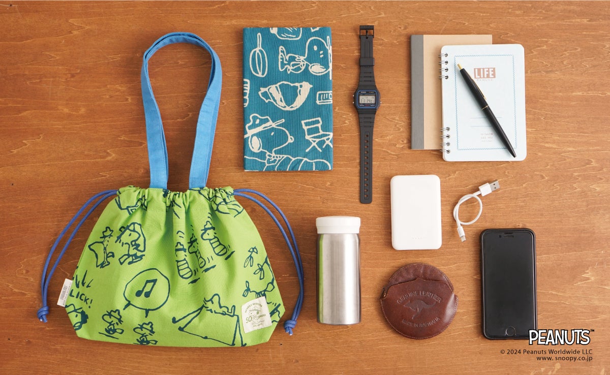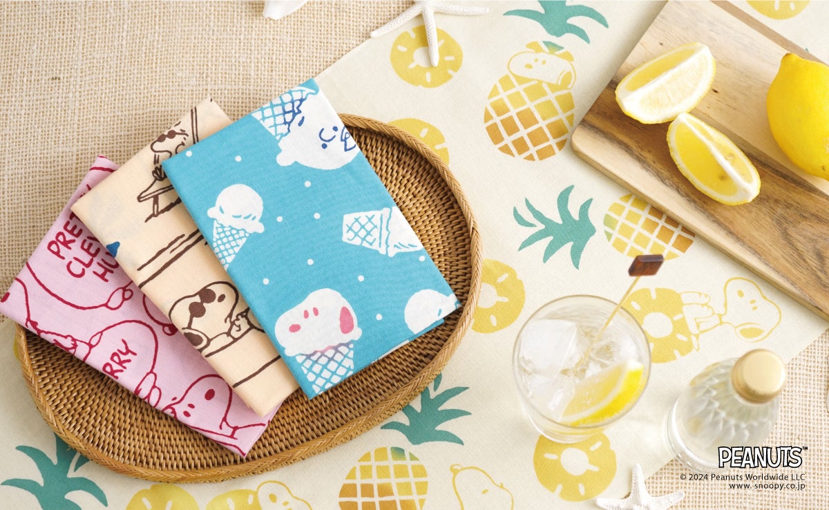 今回で第5弾となるPEANUTSシリーズでは、これからの季節アウトドアシーンで活躍する定番のてぬぐいをはじめ風呂敷や巾着バッグなど、夏のワクワク感が高まるアイテムをお届けします。