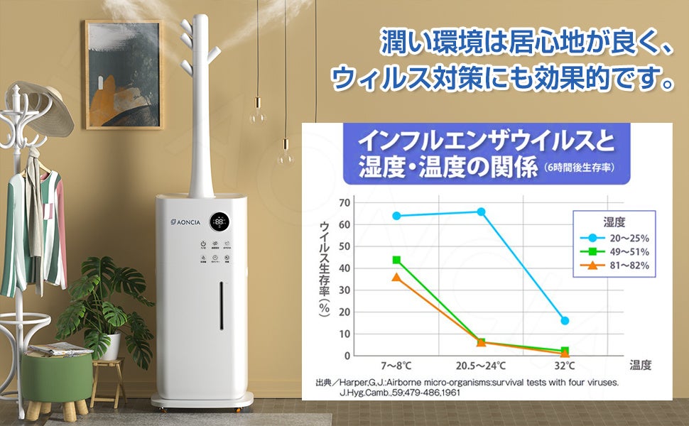 特に秋と冬場の環境は乾燥しているため、湿度を上げる必要があります。超音波式加湿器は物理的に水を霧化して