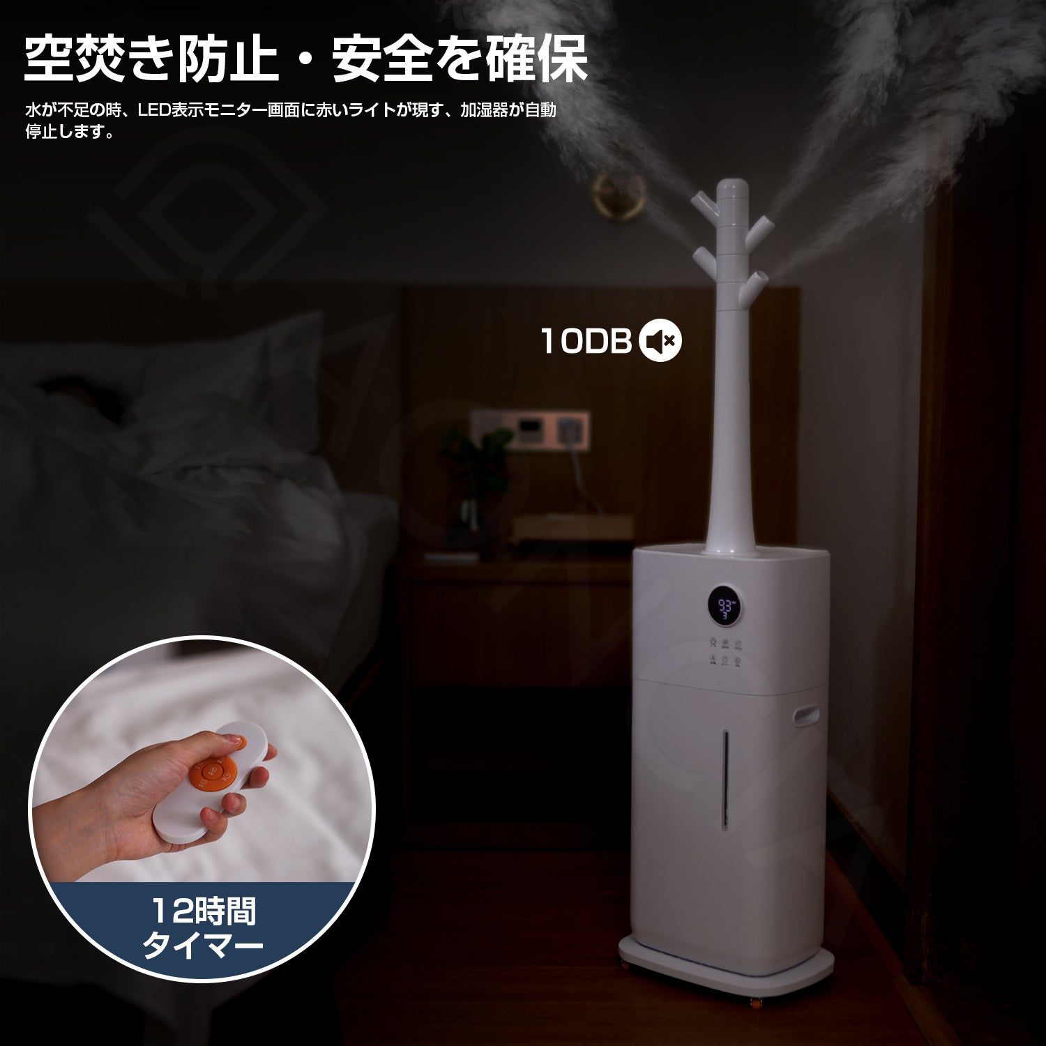 もしタンクの水が不足の時、LED表示モニター画面に赤いライトが現して、加湿器が自動停止します。空焚きなど心配は不要です。