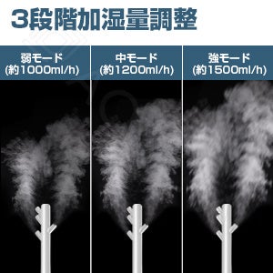 ■3段階加湿量調整、自動加湿コントロール機能、大空間加湿対応