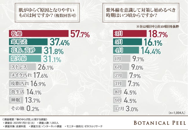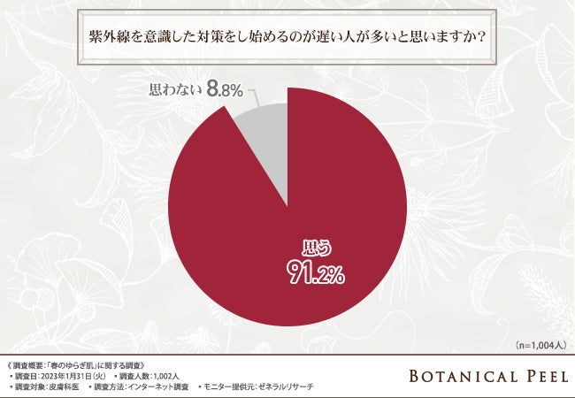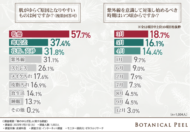 そこで今回、スキンケアブランド『BOTANICAL PEEL』(https://www.botanical-peel.com/)を販売する株式会社CREDEAは、皮膚科医を対象に、「春のゆらぎ肌」に関する調査を実施しました。