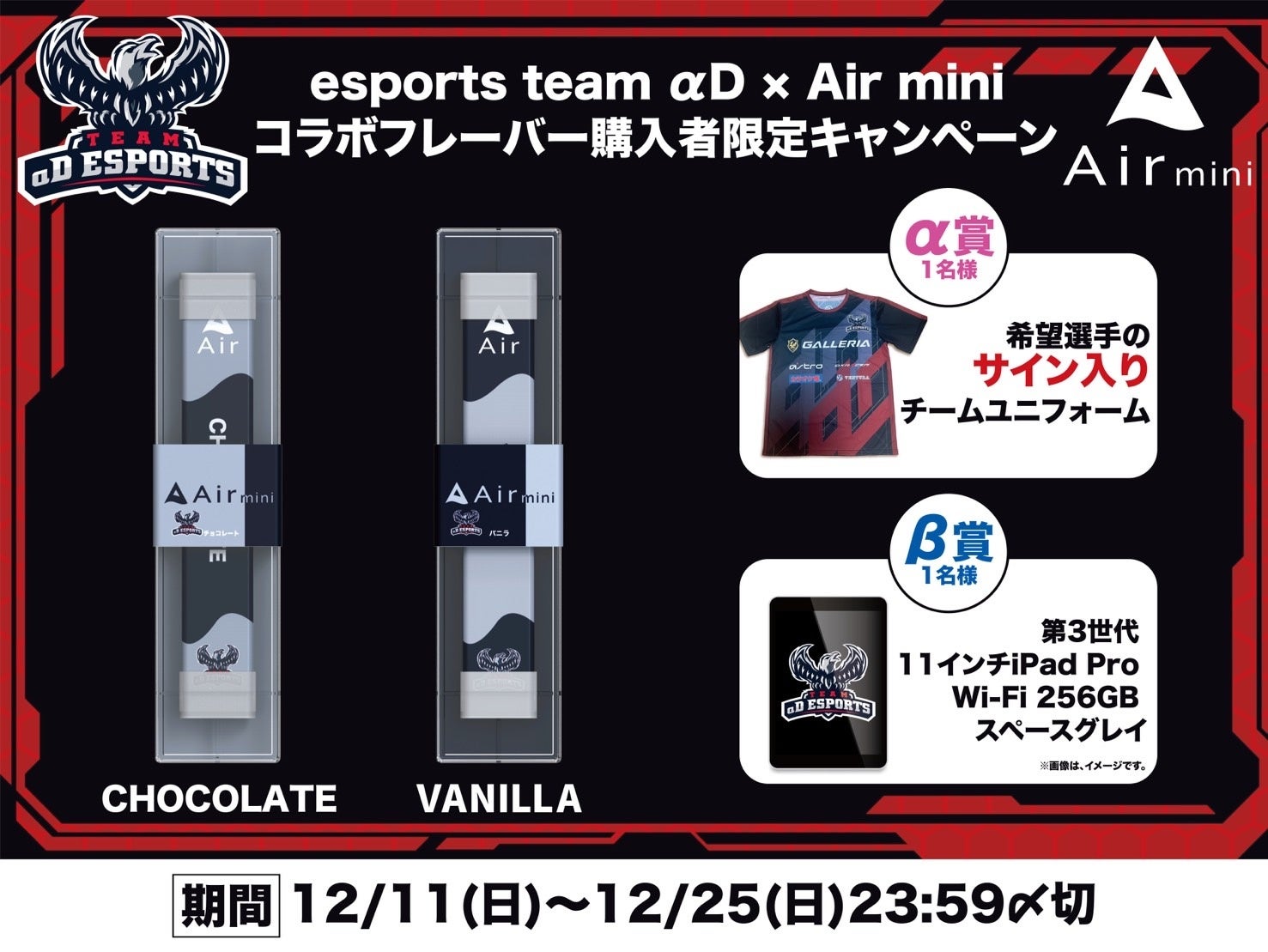 「esports team αD」×「Air mini」のオリジナルフレーバー2022年12月11日より販売開始!購入者限定キャンペーンも開催決定!