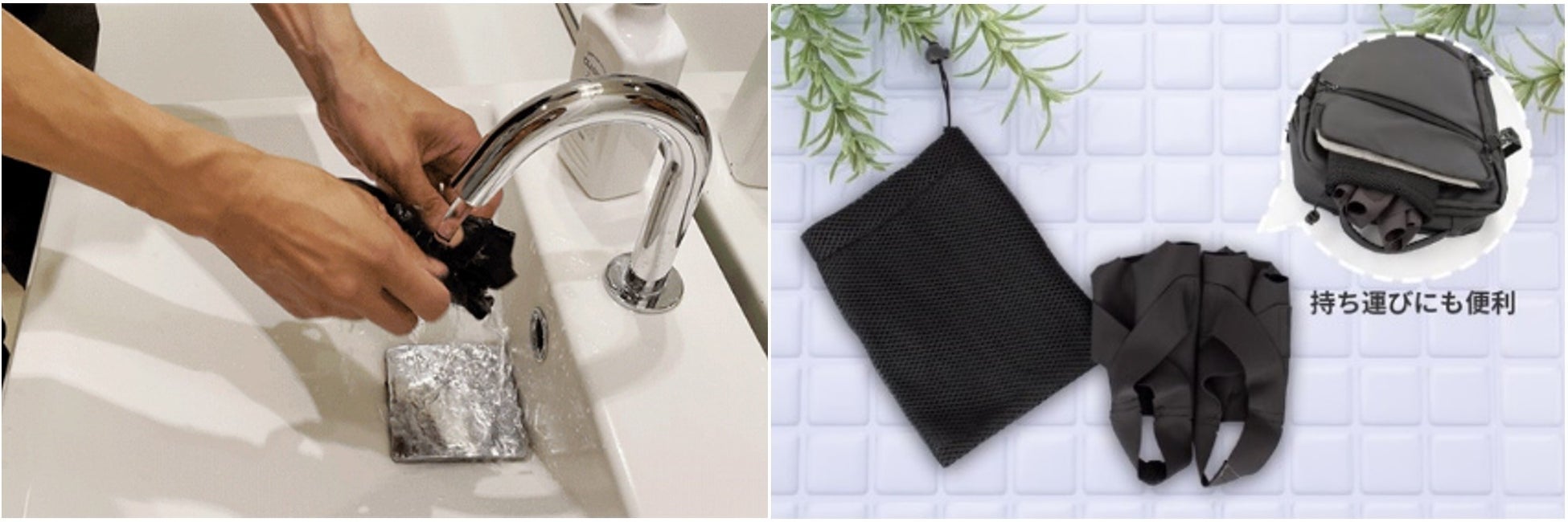 何度でも洗濯できるため、においを気にせず、清潔に長く愛用いただけます。また、持ち運びに便利な収納ポーチ付きで出張やおでかけにも便利です。