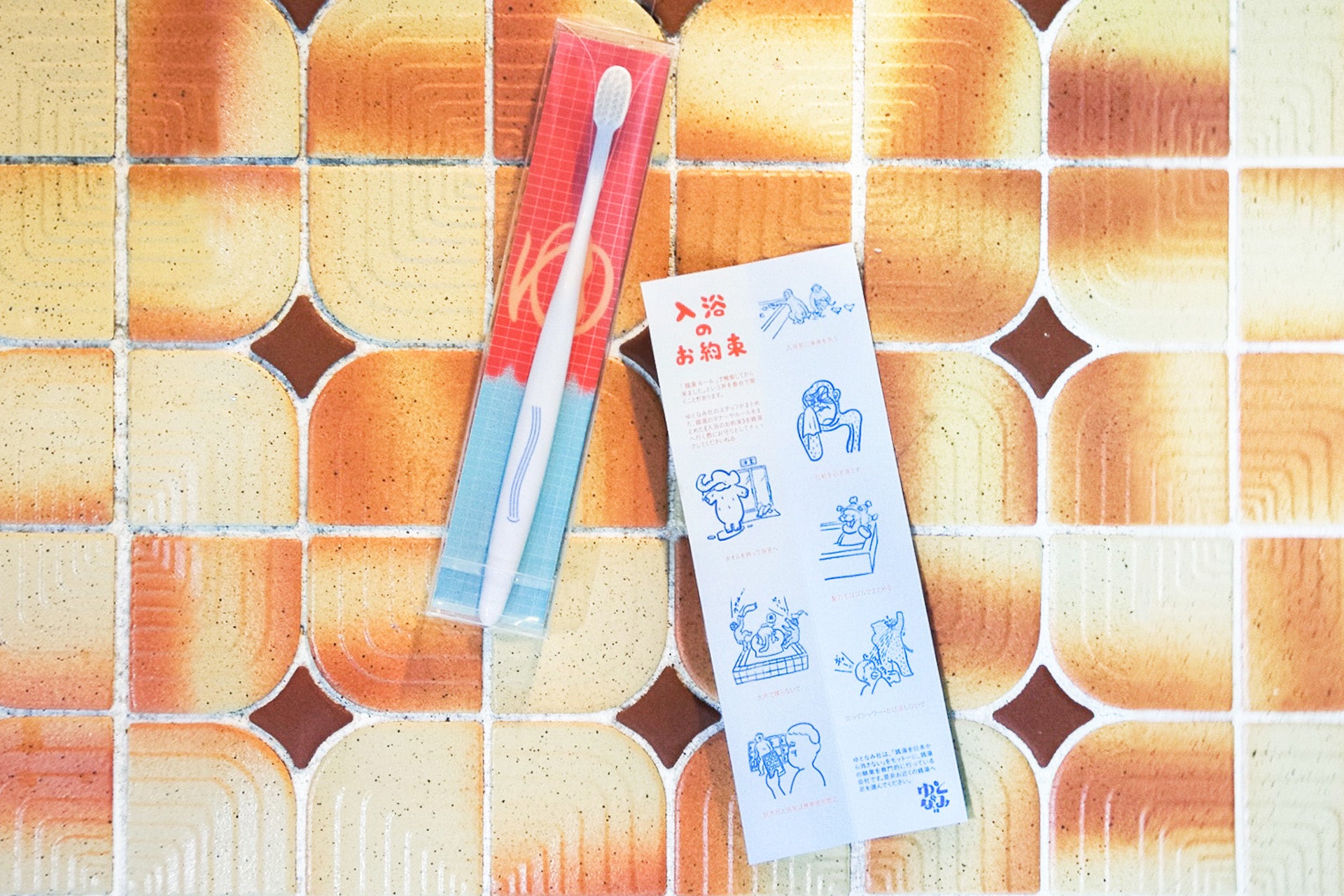 ・今回のコラボレーションによって生まれた限定歯ブラシはゆとなみ社オリジナルの銭湯モチーフの特別デザイン仕様。絶妙なバランスの温泉マークと日常使いしたくなる可愛いデザインを取り入れております。