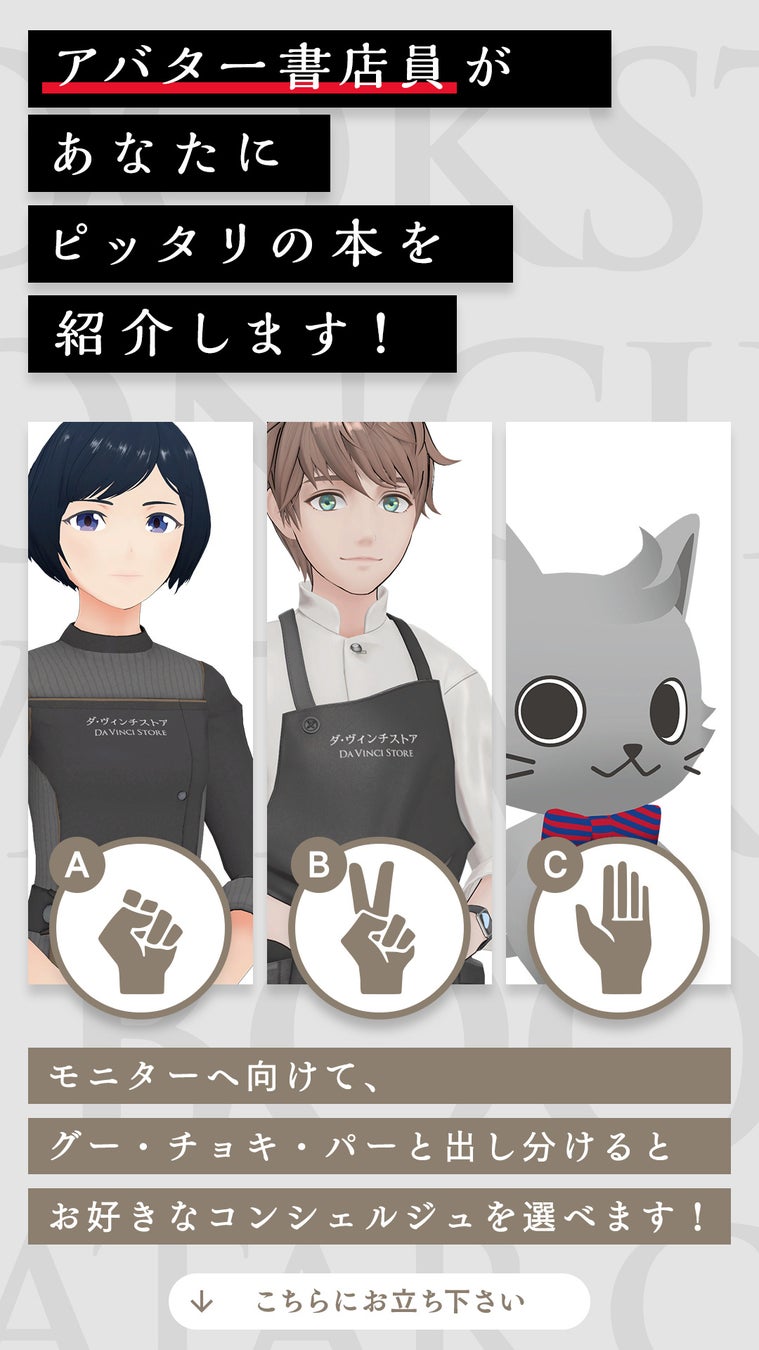 AVITA社が開発をした3DCGアバターとアバターでのリモートワークに特化した「アバターコミュニケーションツール」を活用して初登場する「アバター書店員」では、各ジャンルの書籍に詳しいコンシェルジュたちと実際に会話しながら⾃分にピッタリな本との出会いを実現できます。会期中、ダ・ヴィンチストアの⼩⽥川店⻑からおススメの本を紹介してもらえる⽇もあります。