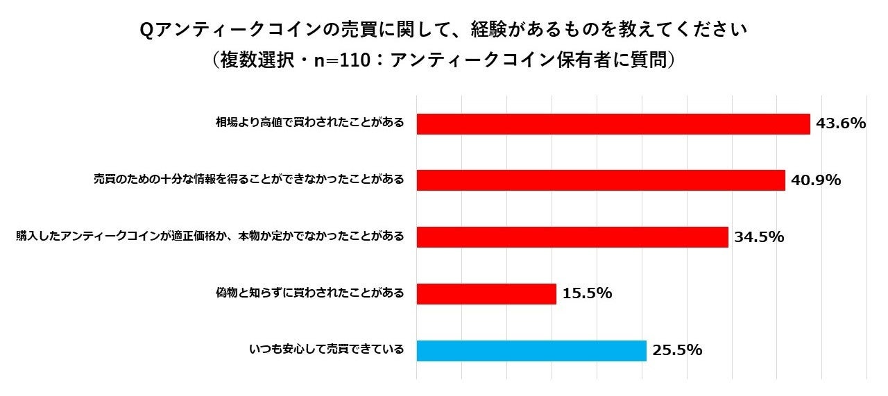 Qアンティークコインの売買に関して、経験があるものを教えてください(複数選択、n=110:アンティークコイン保有者に質問)
