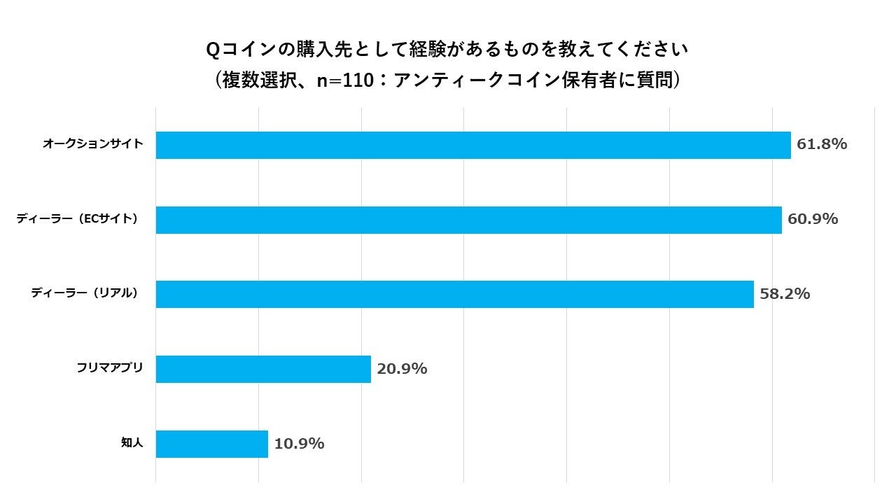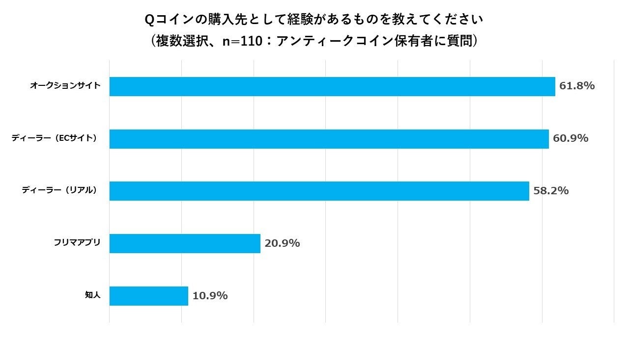 Qコインの購入先として経験があるものを教えてください(複数選択、n=110:アンティークコイン保有者に質問)