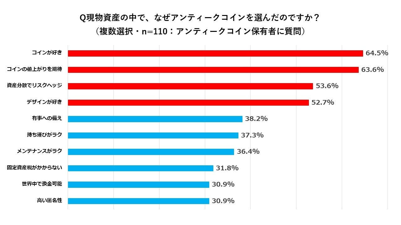 Q現物資産の中で、なぜアンティークコインを選んだのですか?(複数選択、n=110:アンティークコイン保有者に質問)