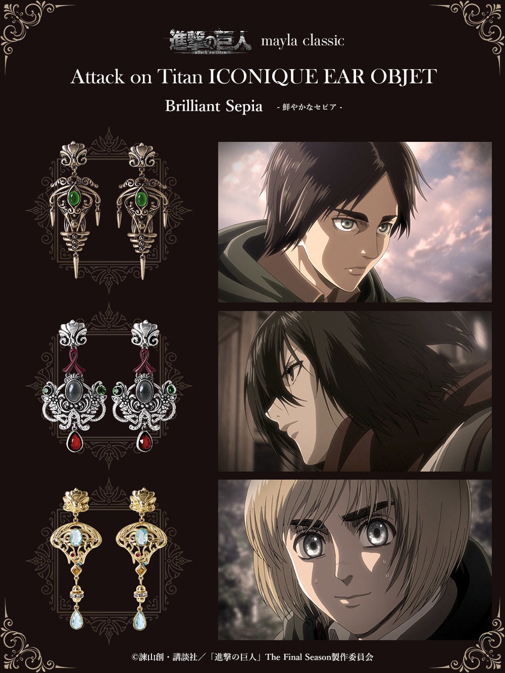 『進撃の巨人』とmayla classicがコラボ!キャラクターをモチーフにしたイヤアクセサリー2022年5月28日(土)12:00より受注生産受付開始