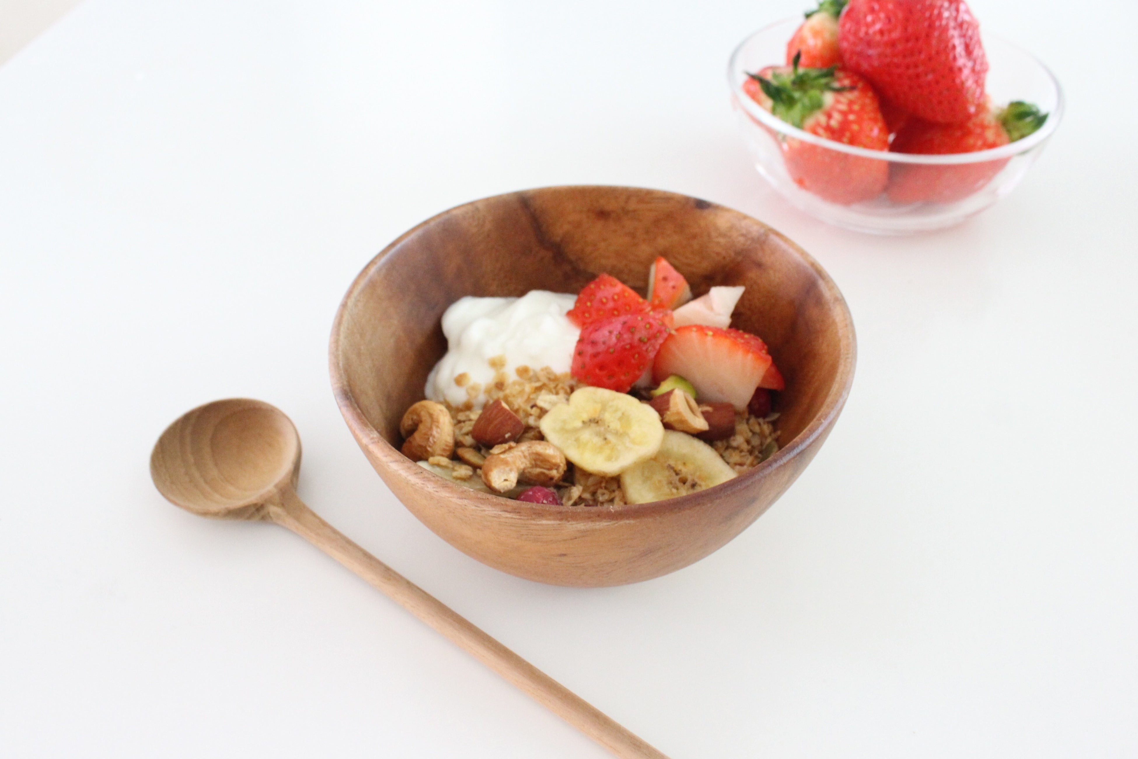 そのため、小麦粉の代わりに「キヌアパフ」や「オートミールロースト」、白砂糖の代わりに「ココナッツシュガー」や「アガペシロップ」を使った、血糖値の上昇を穏やかにする「低GI値」のグラノーラを開発しました。