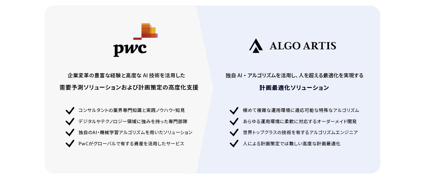 ALGO ARTIS、PwCコンサルティングおよびPwCアドバイザリーと協業 AIを活用した需要予測と計画最適化ソリューションを共同提供
