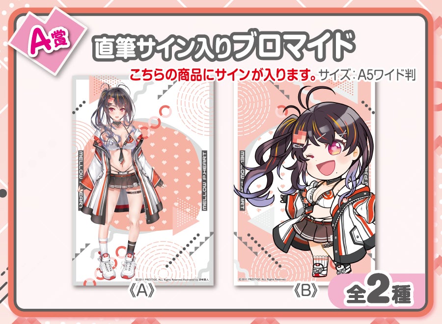 "理想のパートナー"をコンセプトに生まれた美少女VTuber『メロウ・P・ハート』の「直筆サイン入りブロマイド」や「あなたへのメッセージ動画」など、豪華な景品が盛りだくさんです。