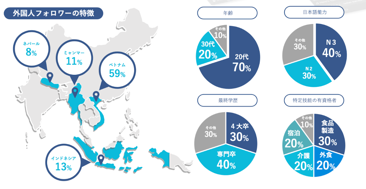 こういった背景から、人手不足に悩む地方企業と日本で働く機会を求めている外国人材とのマッチングを促進するUp Place(アップ プレイス)の提供を開始いたしました。外国人労働者と地域企業とのマッチングを通じて、地方の定住人口の増加にも寄与します。