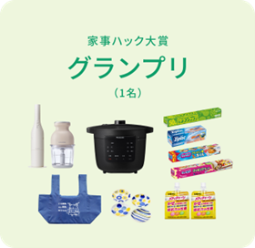 *家事ハック大賞とは:忙しい毎日の家事をもっと楽しく、生活にゆとりをうみ出すアイデアを「家事ハック」と名付け、皆さまから家事ハックを募集するアワードです。「家事ハック大賞」は、自分や自分の家庭ならではの家事に関するアイデアをシェアして時産に繋げることを目的としています。