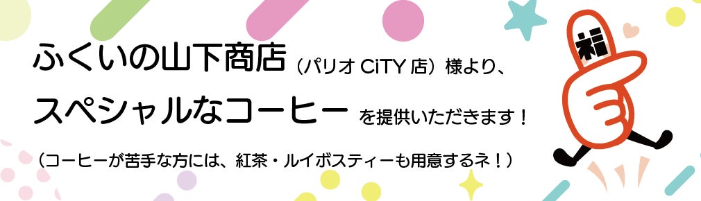 2階のティータイムでは、「ふくいの山下商店」様からコーヒーorルイボスティーをご提供!