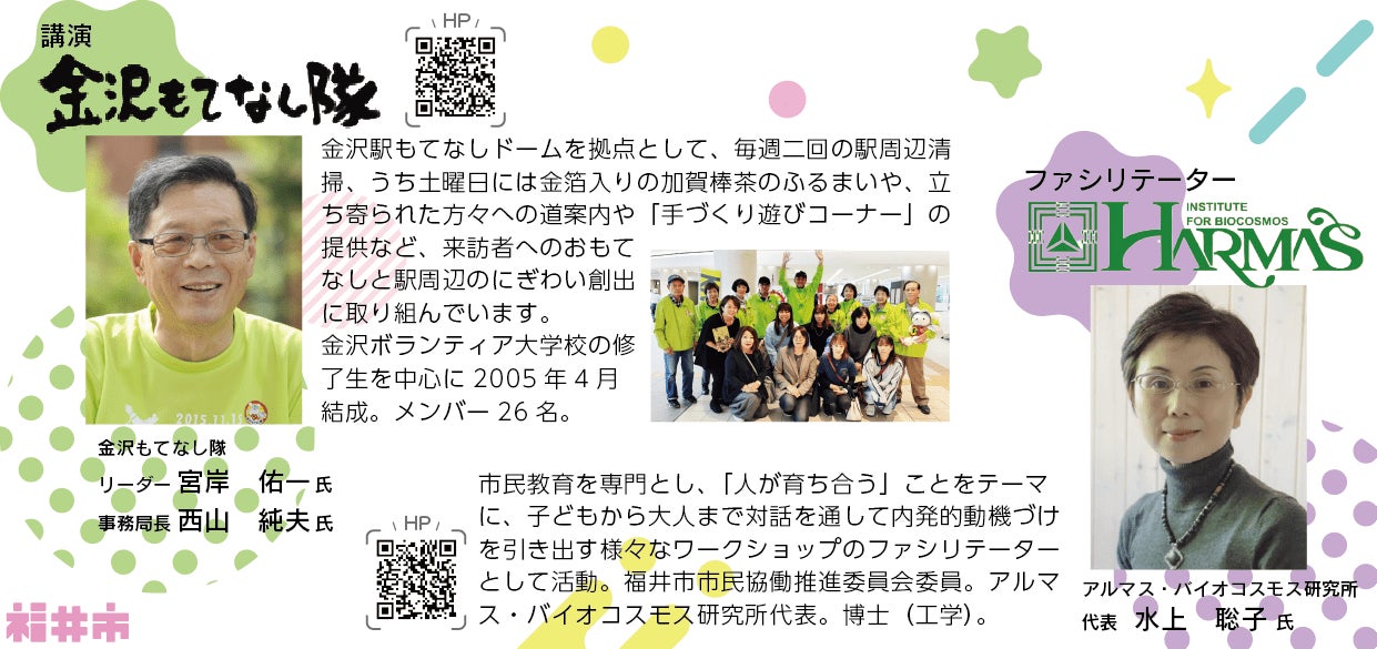 観光客に福井を楽しんでほしい!福井の良さをもっと知ってほしい!福井駅前を盛り上げたい!・・・そんなおもてなし精神あふれる市民のご参加をお待ちしています。