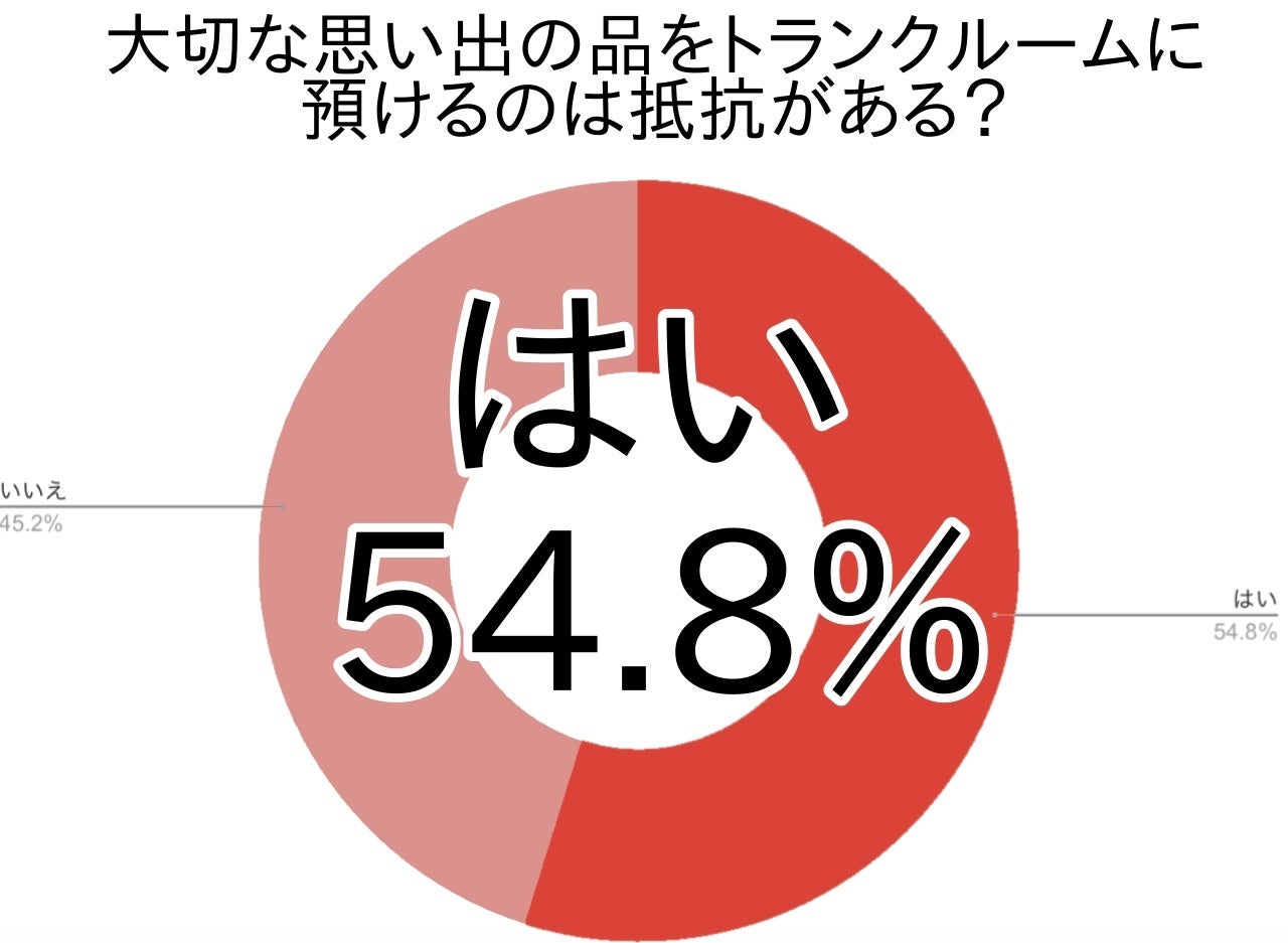 残念ながら、大切な思い出の品をトランクルームに預けるのは抵抗があると答えた方は54.8%でした。大切なものを自宅外に置くことへの抵抗感に加え、保管環境や使い勝手がネックとなるようです。しかし、これはあくまでイメージをもとにした回答です。