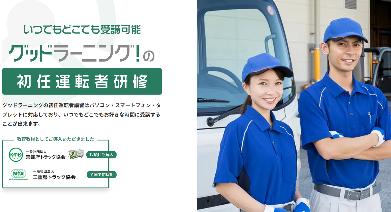 私たちグッドラーニング!はスマホやパソコンで学習ができる自由度の高いeラーニングサービスで運輸業界のドライバー教育をサポートしてまいりました。