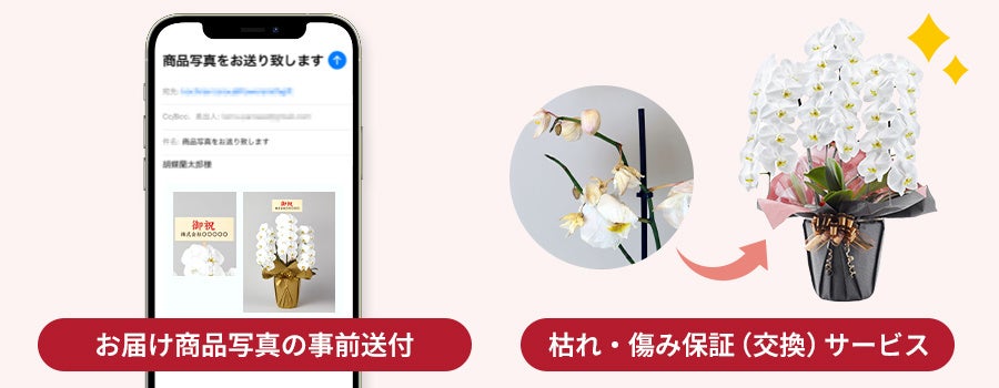 また、商品の品質には万全を期しておりますが、万が一配送中のトラブルや商品の枯れ・傷みがあった場合は、商品の交換も可能です。