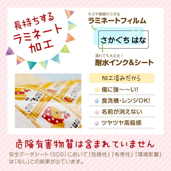 『毎日のお仕事や育児に追われている、パパ・ママのお手伝いが少しでもできれば…』という想いで、20年にわたり、お名前シールをはじめ名入れ商品の販売を通じて、仕事や育児に多忙な保護者のみなさまの入園・入学準備のお手伝いをしてまいりました。これからもさまざまなアイデアを発信し、名前つけをラクに楽しく、使う人々が笑顔になるアイテムを作り続けてまいります。