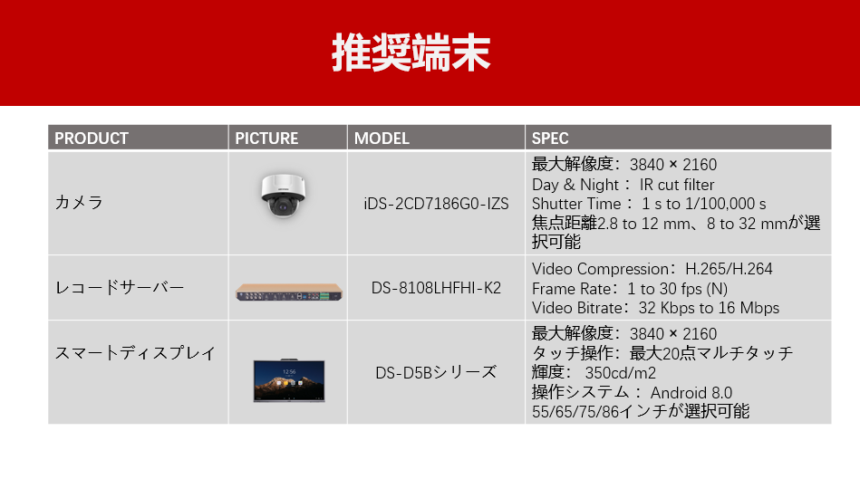 2019年に設立されたHIKVISION JAPAN株式会社(ハイクビジョンジャパン株式会社)は監視カメラ事業、アクセス制御、顔認証製品等の事業分野を柱とし、日本市場のお客様のニーズに応える幅広い製品やサービスを提供しております。今後は、EZVIZ、Hik Robot、Automotive Electronics、Intelligent StorageとHimicroをハイクビジョングループとして、「課題の解決を軸に、あらゆるソリューションを提供する」ことを企業理念とし、この使命を実現するために、「人々の安全性を高める」という価値を守ります。そしてこれらを礎に、グループ一体となり、日本顧客の未来創造に貢献していきたいと考えております。