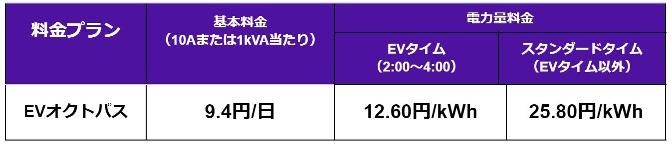 「EVオクトパス」にお申し込みいただくと、深夜2:00 〜 4:00の間は、それ以外の時間帯の料金単価の半額以下で電気をご利用いただけます。