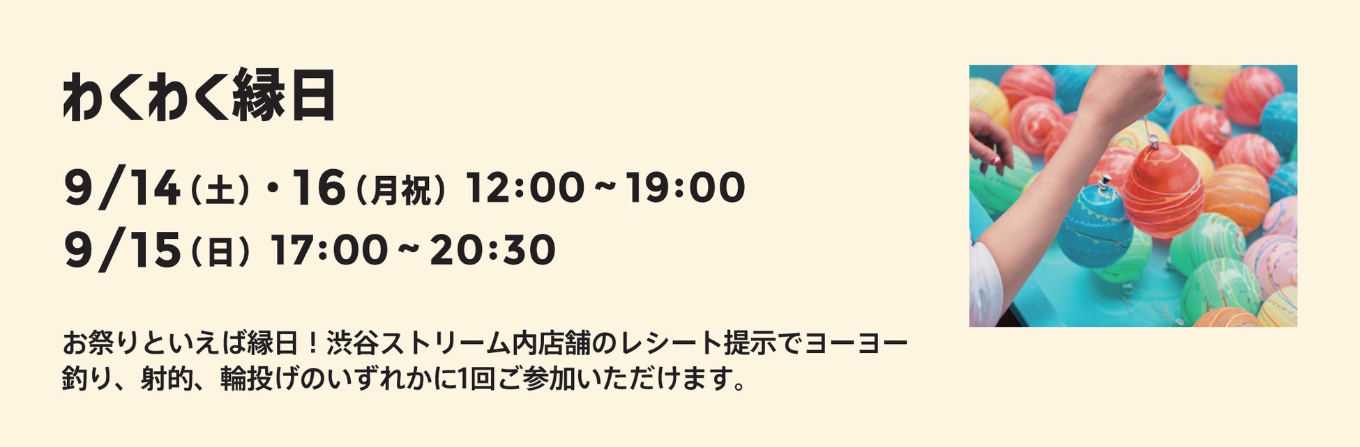 ★9月14日(土)~9月16日(月祝) 渋谷ストリーム 秋まつり