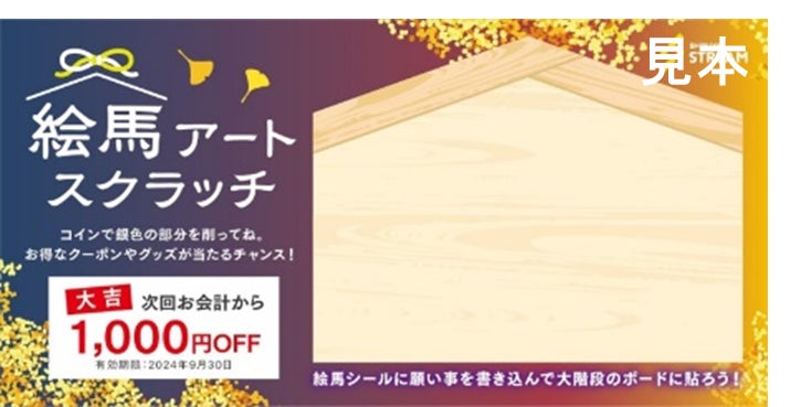 渋谷ストリーム各飲食店舗にて税込1,000円以上のご利用で、絵馬シール付きスクラッチくじをお渡しします。