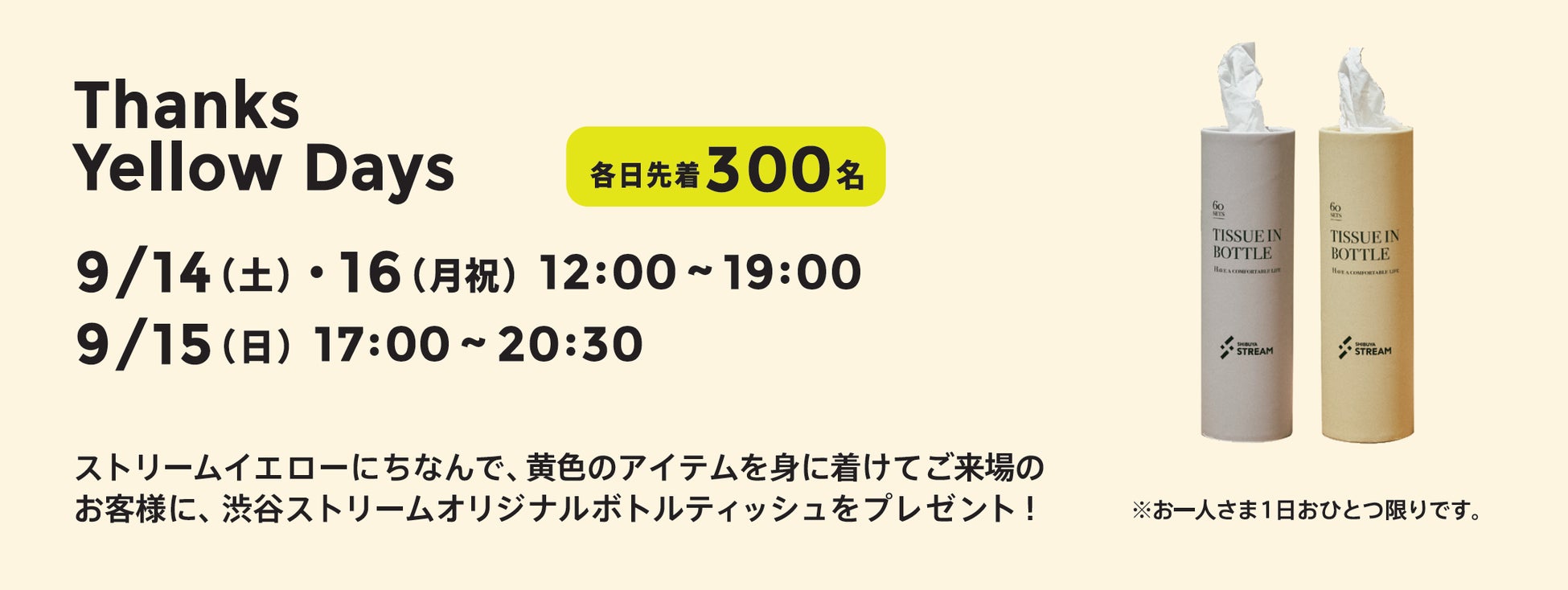 東急プロパティマネジメント株式会社が運営する大規模複合施設「渋谷ストリーム(SHIBUYA STREAM)」(以下、渋谷ストリーム)は、2024年9月13日(金)に開業6周年を迎えます。渋谷ストリームからお客さまをはじめ、地域の皆さま、店舗に向け、開業6周年を迎えることができた”ありがとう“、日頃の“ありがとう”を“感謝祭”にてお伝えします。ストリームイエローに染まる「感謝祭」をぜひお楽しみください。