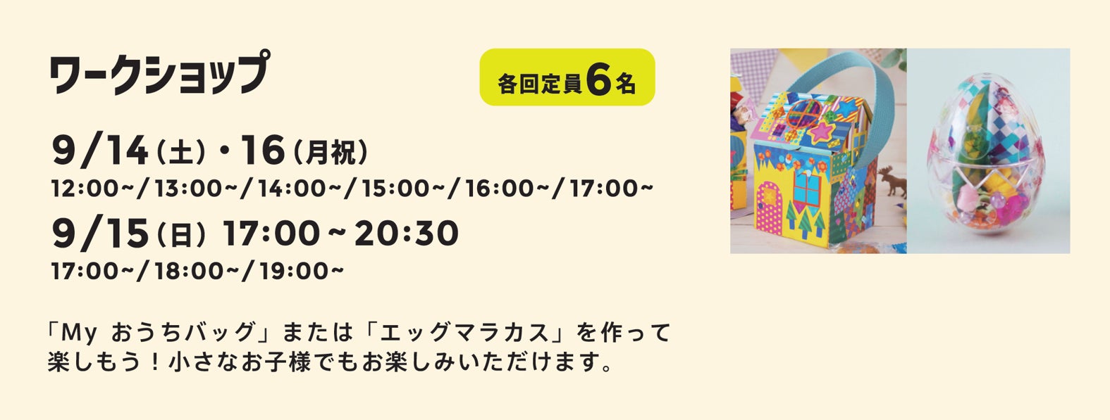9月15日(日) Myおうちバッグ or エッグマラカス 【17:00、18:00、19:00】