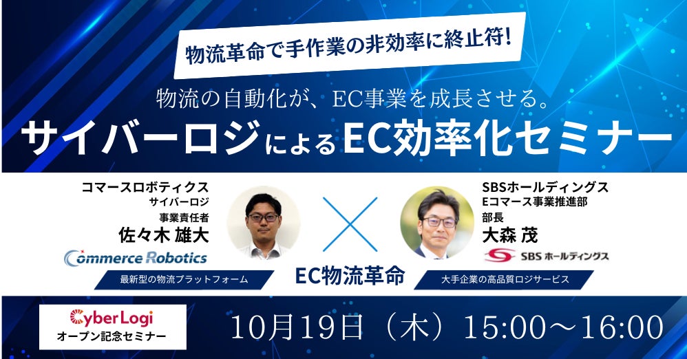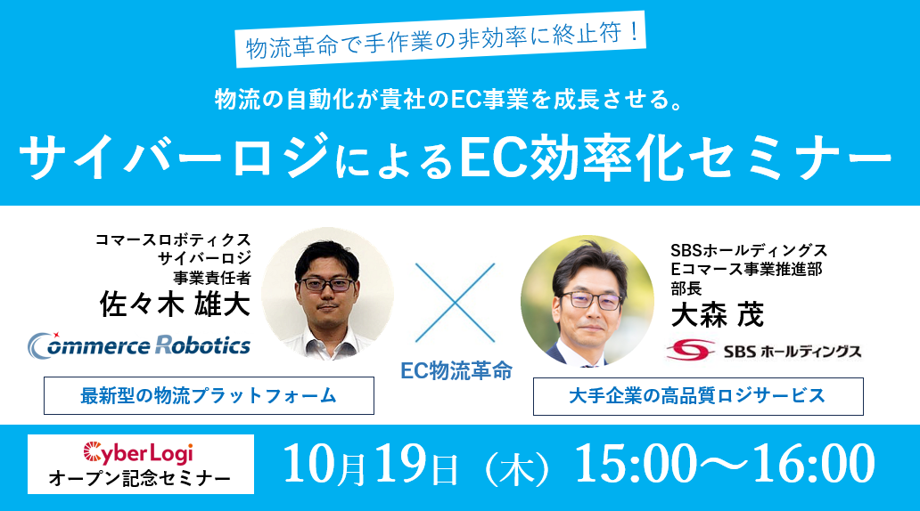 【サイバーロジ共催セミナー:コマースロボティクス×SBSホールディングス】古いサービスから、乗り換えたくなる。「最新型の物流プラットフォーム活用によるEC効率化セミナー」【10月19日(木)15時】