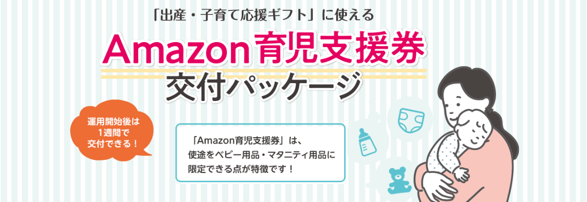 「Amazon育児支援券」はベビー用品・マタニティ用品に使途が限定できるため、妊婦・子育てに必要な支援を確実に届けるのに効果的です。自治体独自で行う子育て支援事業にもご利用いただいています。