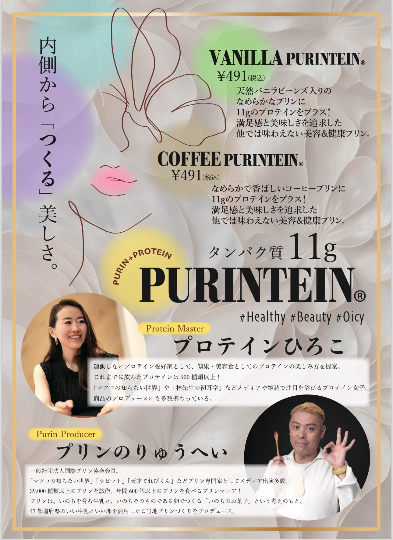 プリンのプロである一般社団法人国際プリン協会会長の「プリンのりゅうへい」と、プロテインの専門家「プロテインひろこ」がコラボしたプロテイン×プリン「プリンテイン」が初デビュー!