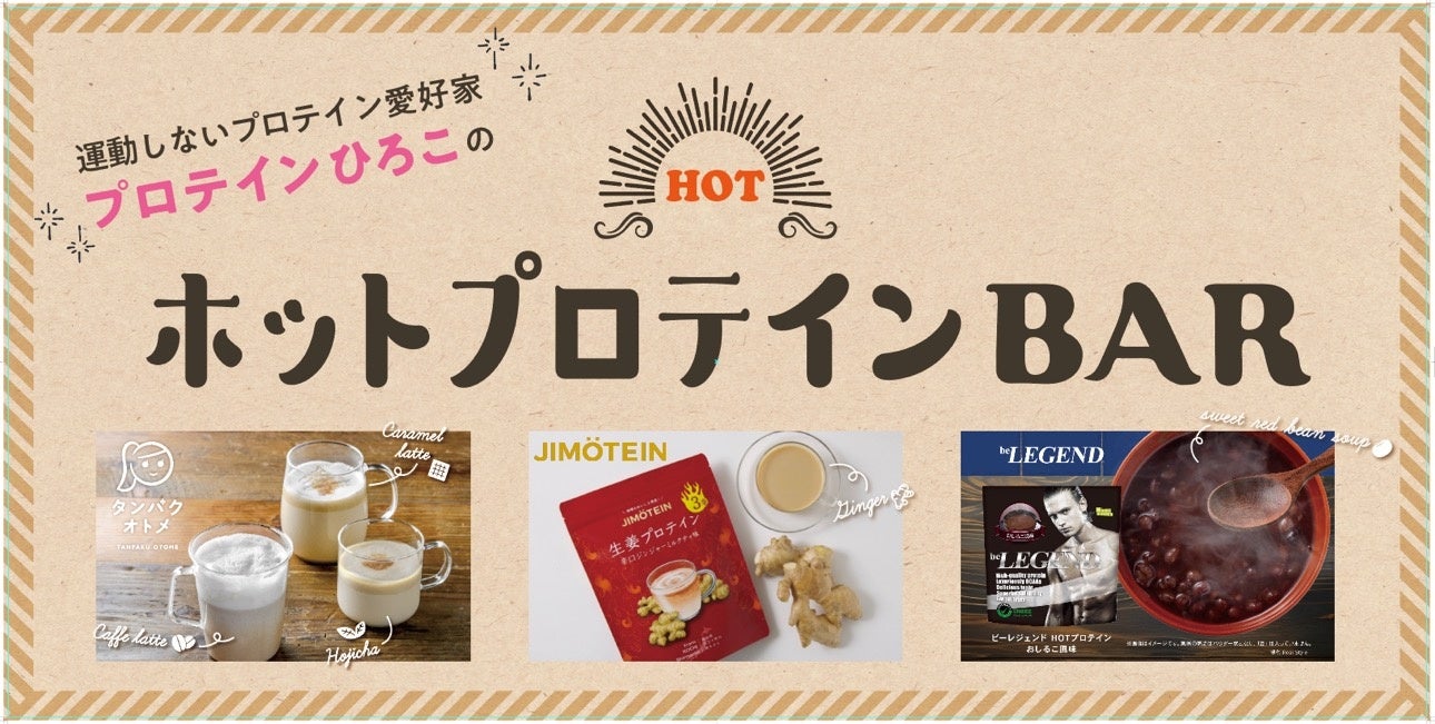昨年好評だったホットプロテインをテイクアウトできる「ホットプロテインBAR」を今年も行います。冷たい飲み物が苦手で寒い冬にプロテインをやめてしまう女性も多いですが、新しいプロテインの楽しみ方を阪神梅田本店よりご提案いたします。