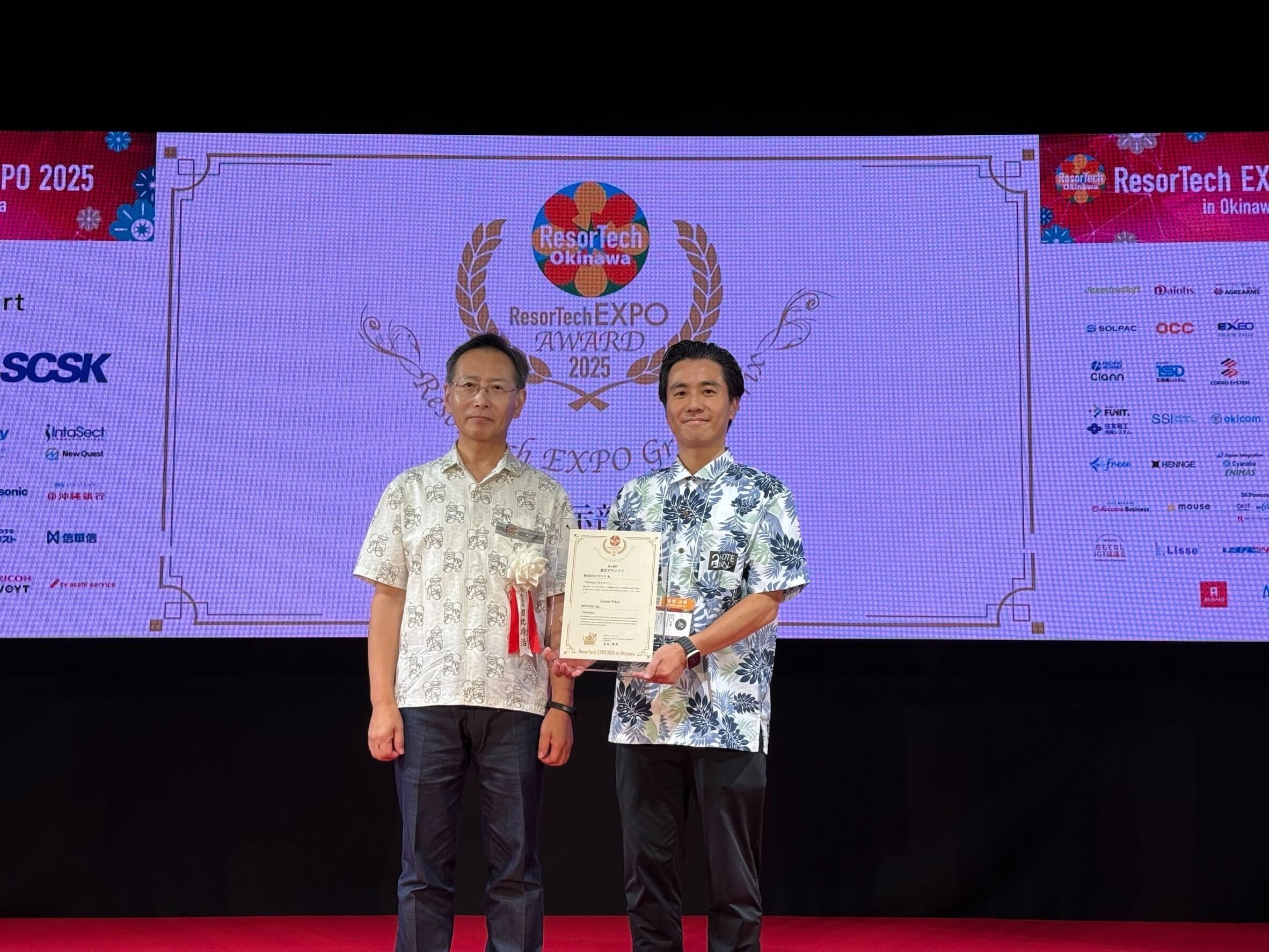 ResorTech EXPO in Okinawaに展示される技術・製品・サービス等、または沖縄全産業でのテクノロジー利活用に関わる企業、団体、案件について、「ResorTech EXPO Award選考委員会」が学術的・技術的観点、市場性や将来性等の視点から、イノベーション性が高く優れていると評価できるものを審査・選考し、表彰します。その中の展示部門でHoteKanが総合グランプリを受賞しました。