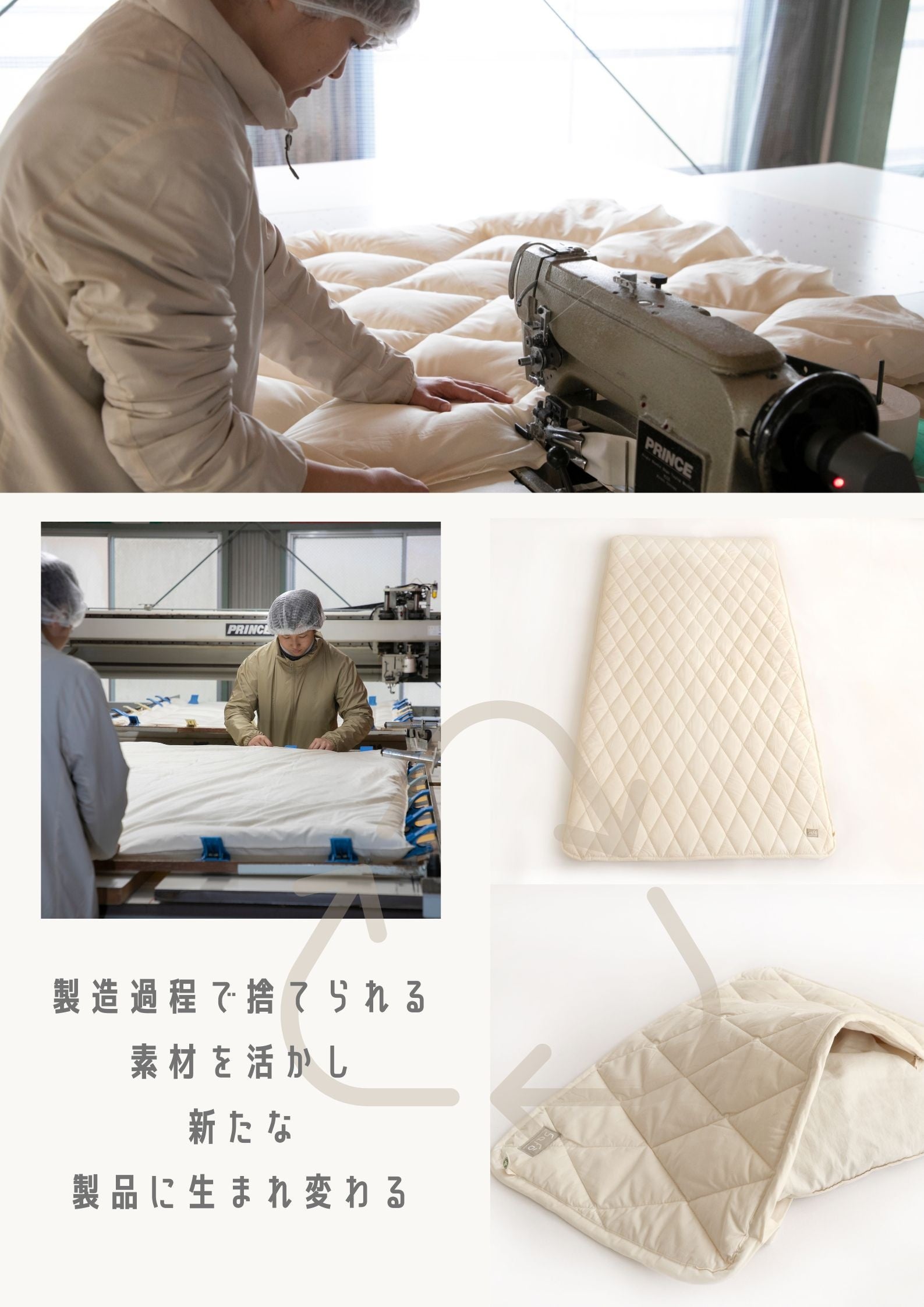コストをかけてでも、無駄をなくそう、新しい価値を生み出そう、という思いから生まれた、オーガニックのまくらカバーは、環境に負荷がかからないように、できるだけそのままの素材を活かしアップサイクル。ほどよく弾力のある肌触りとキルトパターンがアクセントの新作のオーガニックまくらカバー、是非店頭でお手に取ってご覧ください。