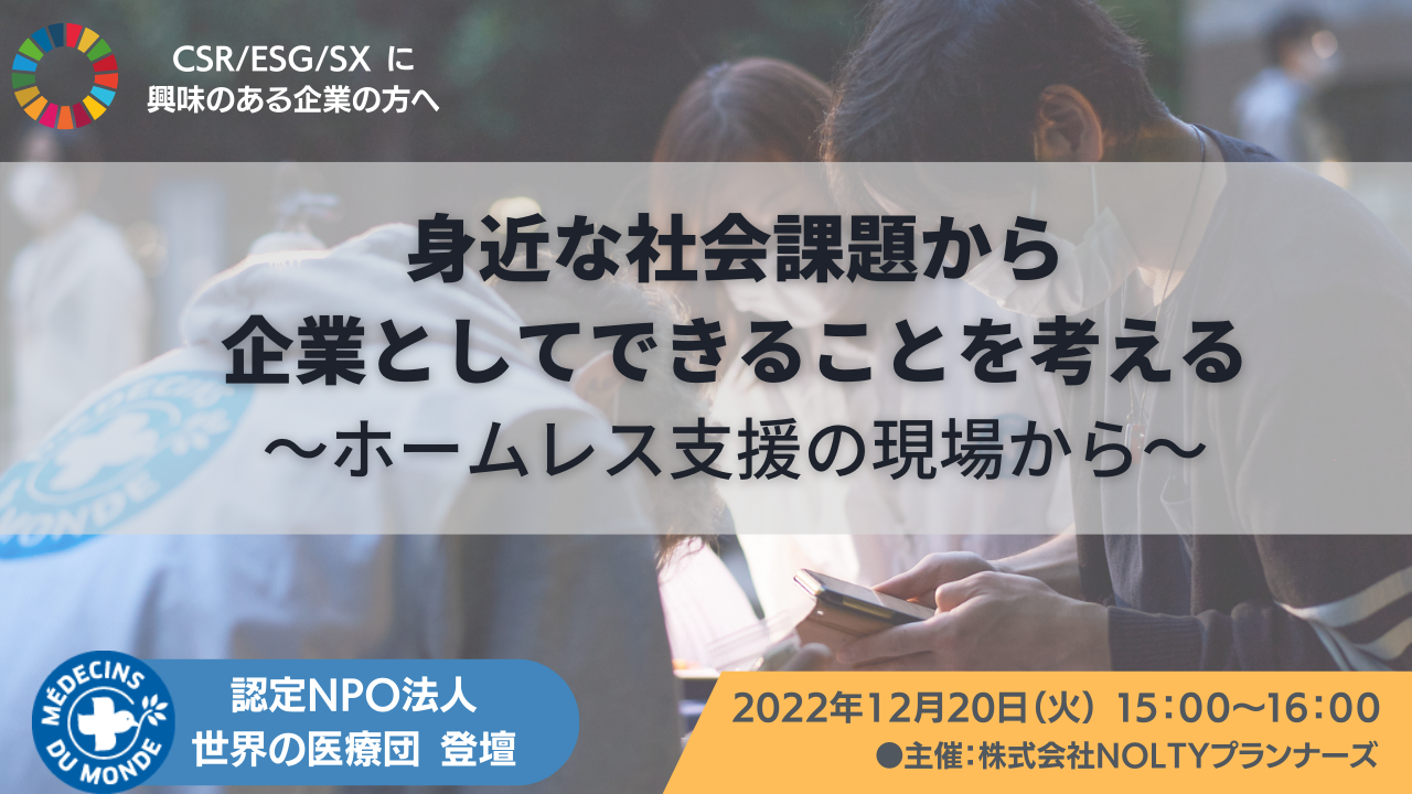 【オンラインセミナー】身近な社会課題から企業としてできることを考える~世界の医療団ホームレス支援の現場から~