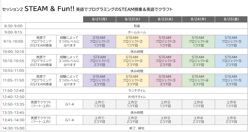 [セッション2]:8月21日(月)~8月25日(金) 9:00-14:30
