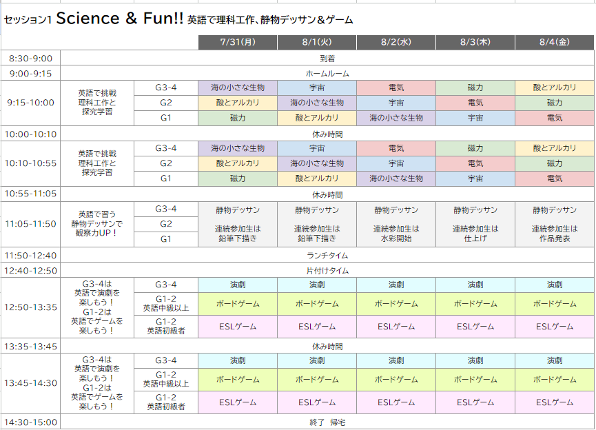 [セッション1]:7月31日(月)~8月4日(金) 9:00-14:30