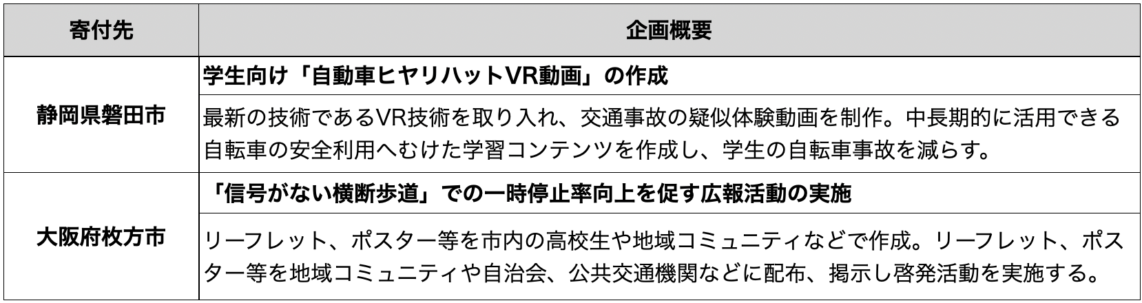 〜「より安全な交通環境・社会の実現」に向けた地方自治体の取り組みに寄付、保険業界の新しいかたちを目指す、2年連続の取り組み〜