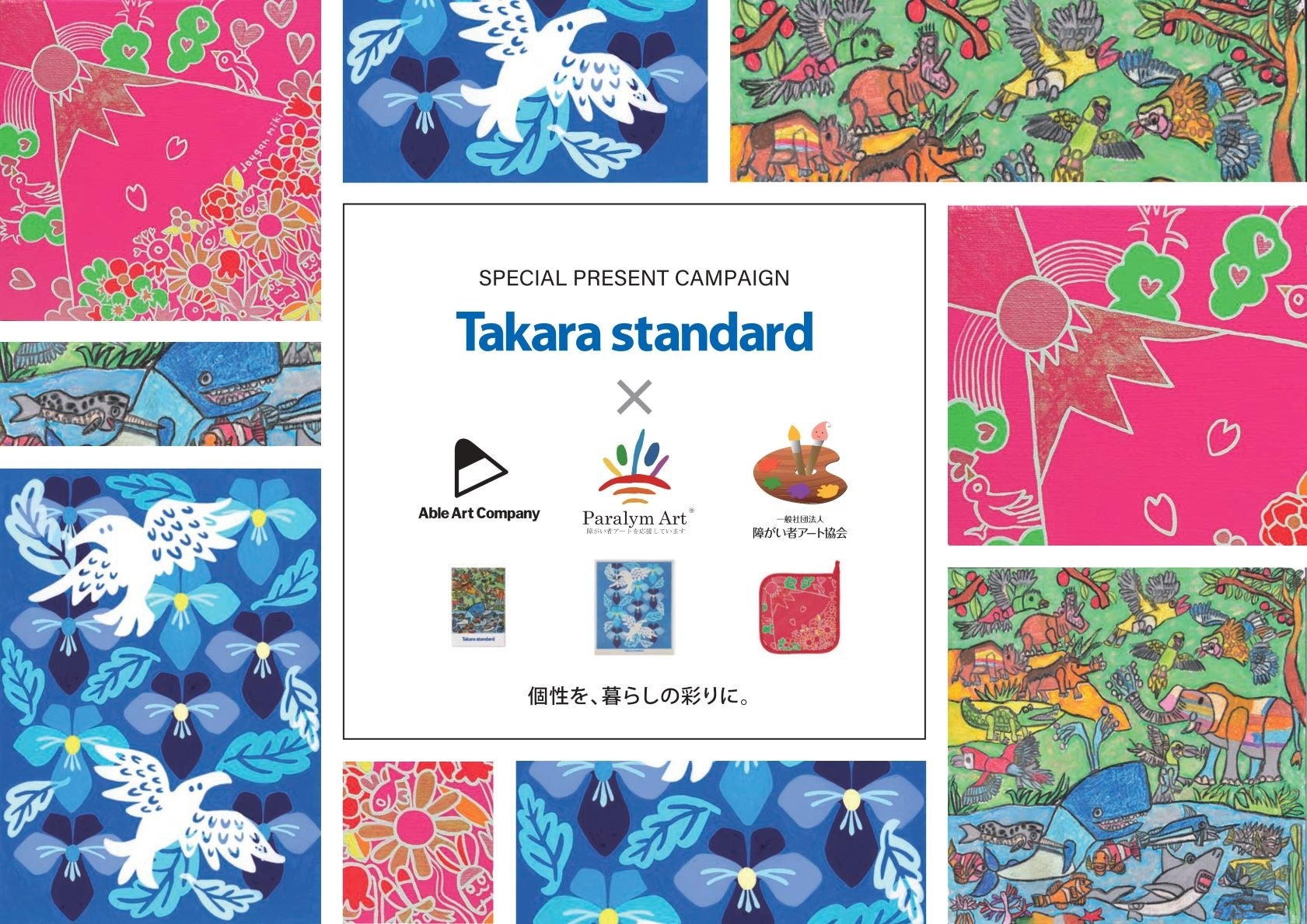 タカラスタンダードは、2021年に策定した「中期経営計画2023」の基本戦略の一つに「ESGへの取り組み強化」を掲げ、社会・環境問題への取り組みを促進することで、「すべての人の暮らしを、より心地よくする」という経営理念の実現を目指しています。この度、障害のある人たちによるアート作品を発信し誰もが自分らしく生きていける社会を実現する、という「エイブルアート・カンパニー」、「一般社団法人障がい者自立推進機構」、「一般社団法人障がい者アート協会」の3団体の活動理念に賛同し、業界最多のショールームを活用してその認知向上を支援する運びとなりました。
