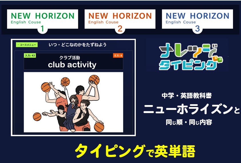 今年5月にリリースした、東京書籍の中学英語教科書「ニューホライズン」と連動したタイピング練習サイトに、2学期分の約750単語を公開しました。当サービスは、学校や個人は、完全無料で、アカウント登録不要、URLにアクセスするだけで、中学生が1、2学期に学習する約1950の英単語を網羅したタイピング練習をすぐに始めることができます。