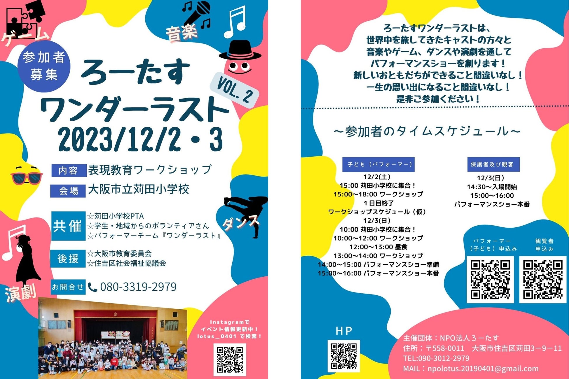 【ろーたすワンダーラストvol.2】12/2(土)・12/3(日)に子ども達100人以上が集まり、表現教育ワークショップを開催します!