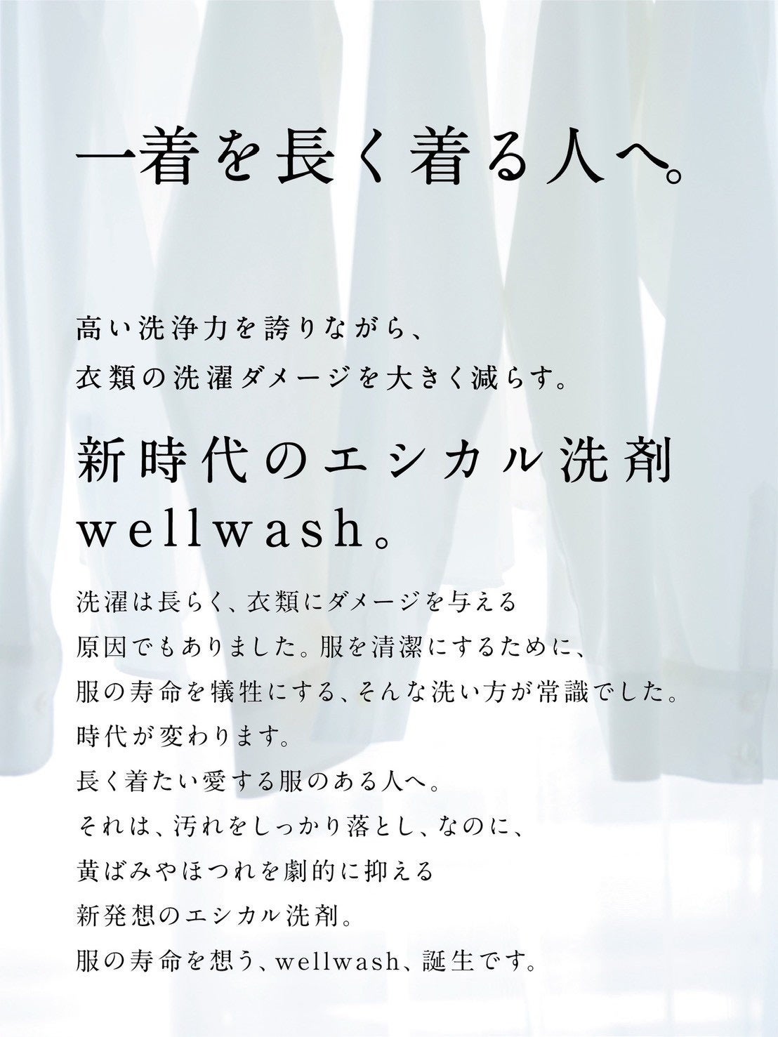 ホワイトは“白をまもる”、カラー(denim)は“色をそだてる”という想いから誕生した新シリーズ。衣替えシーズンにぴったりな“服をいたわる洗い”を、ぜひこの機会にお試しください。