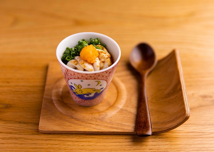 「たち」とは鱈の白子のこと。ゆっくりと火入れをすることで、クリーミーな食感に。ぽん酢でさっぱりといただけます。