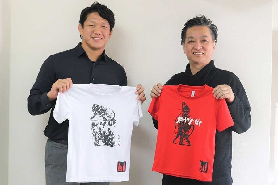 ※御朱印のデザインを協議する元日本代表大野均氏(左) 菊谷崇氏(右)