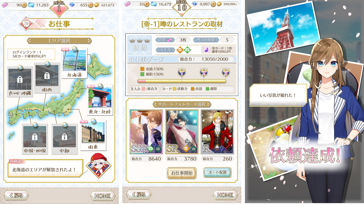 手に入れた素材を使用してカレのカードを育てれば、より難しいお仕事にも挑戦できるようになります。