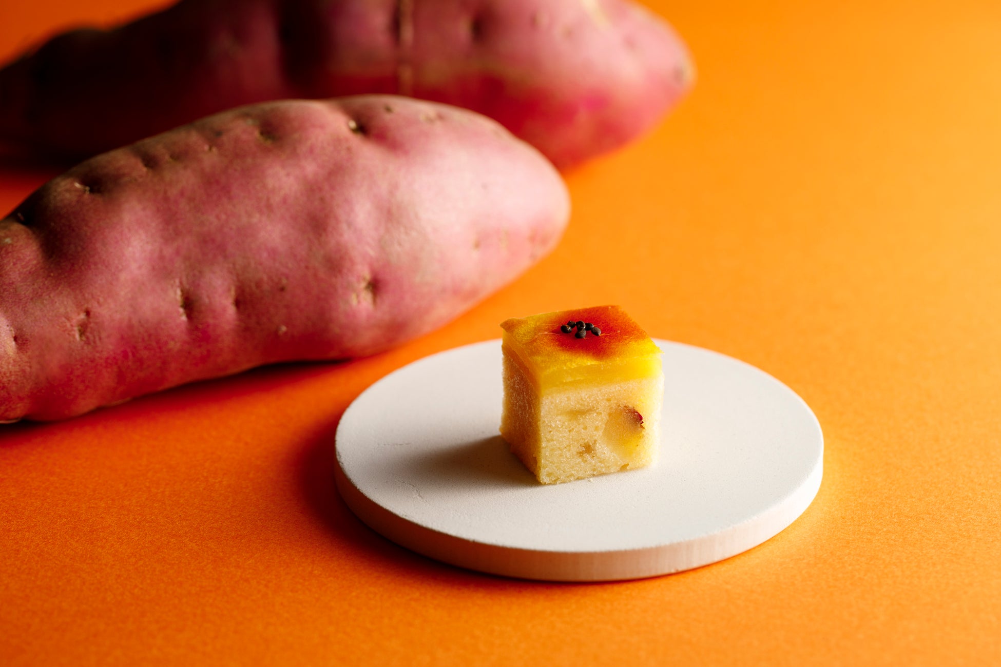 ホクホク食感と奥深い甘さが特長の五郎島金時を、ふんだんにプニーニ生地に練り込みました。しっとり柔らかなスイートポテトを乗せ、口いっぱいに広がる芋本来の美味しさをお楽しみいただけます。