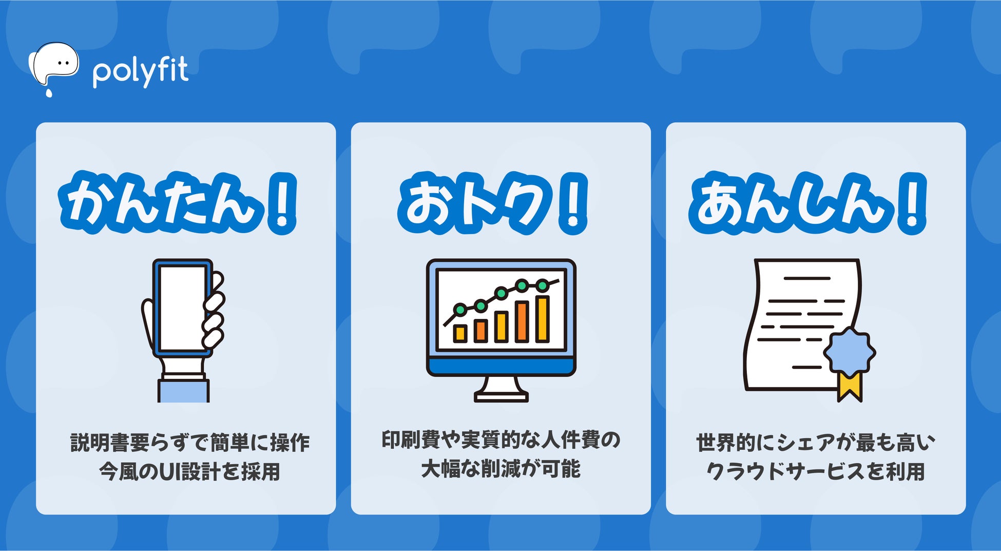 - クラウドPTA活動⽀援ソフト『polyfit(ポリフィット)』とは ?3つのポイント「かんたん、おトク、あんしん」